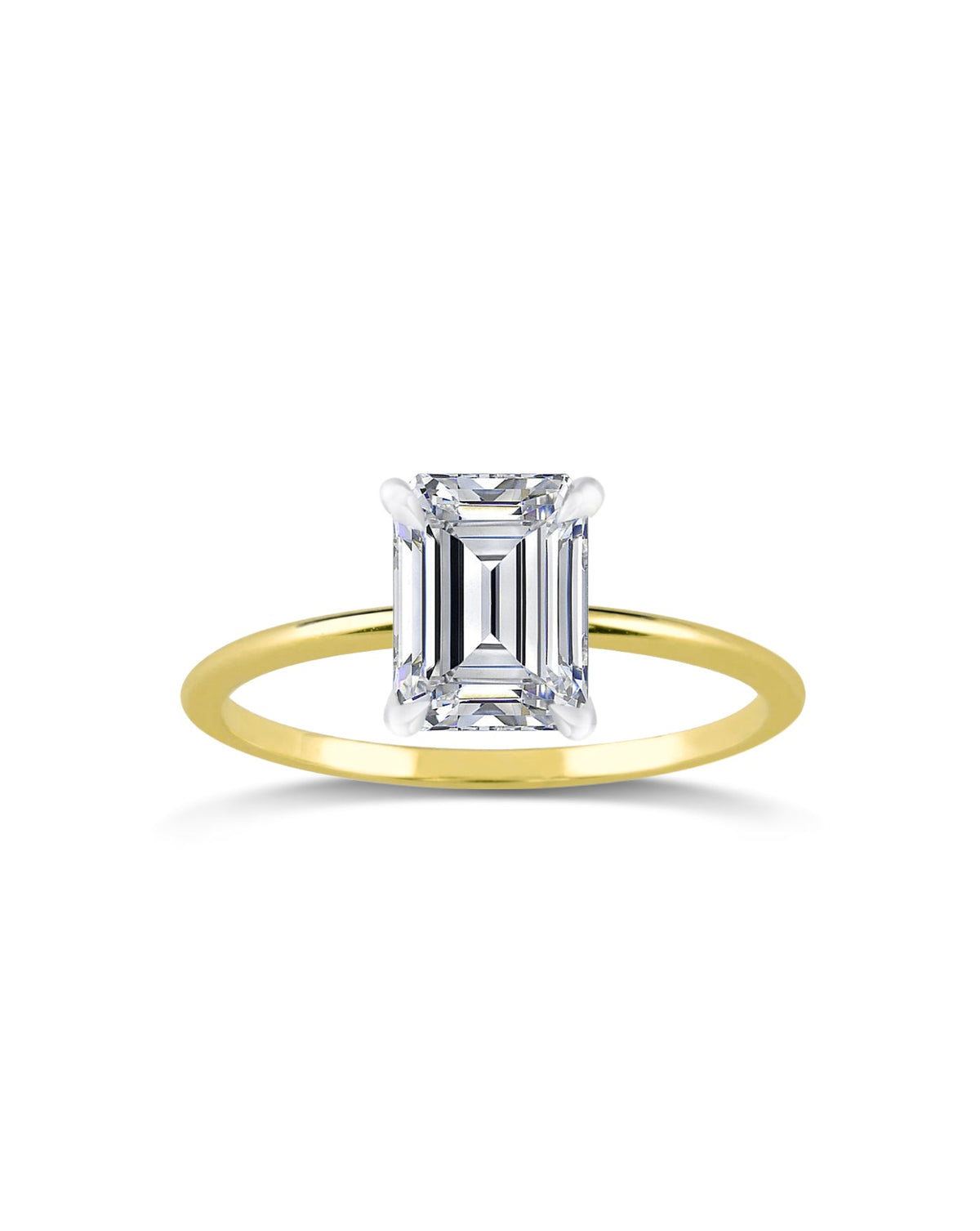 Emerald Diamond Solitaire with Thin Gold Band
