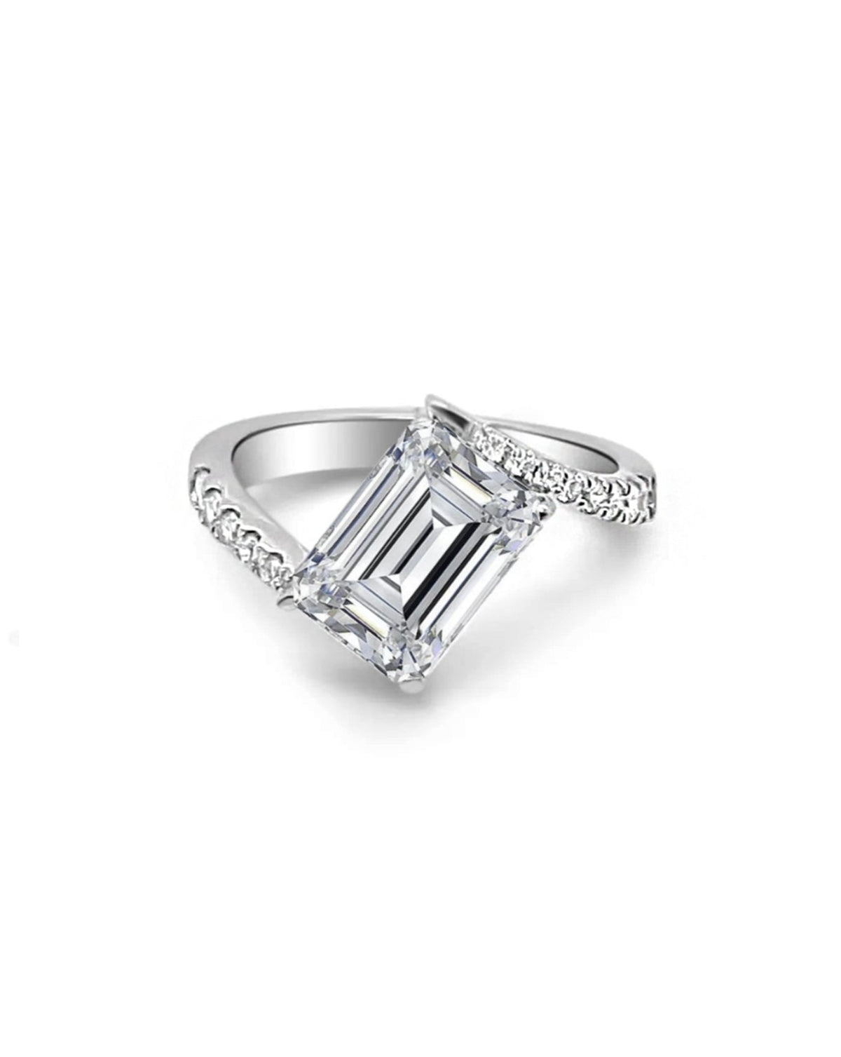 Asymmetrical Diamond Ring | Emerald Cut 3 ct LAB Diamond